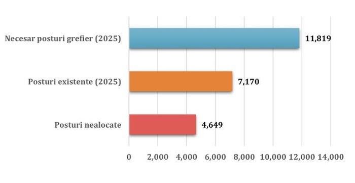 De asemenea, un deficit de personal semnificativ se înregistrează și la nivelul grefierilor, aspect care, evident, îngreunează la rândul său activitatea în instanțe. În acest sens, CSM arată că în șase ani s-au promis minimum 600 de posturi, dar nu s-a alocat niciun post.