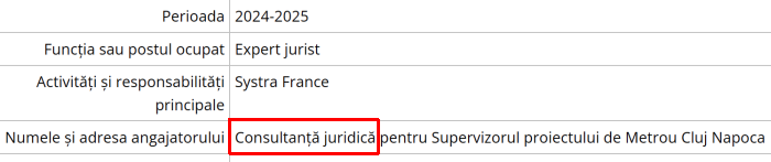 De asemenea, menționăm că existența activității de consultanță juridică în relația de afaceri dintre Dacian Dragoș și Systra France este consemnată atât de către contractul încheiat între PFA-ul actualului judecător CCR și compania franțuzească (vezi anexa de la finalul articolului), cât și de către Dragoș însuși, în întâmpinarea depusă în instanță, unde juristul menționează că a activat ca „expert juridic” la diverse instituții (inclusiv la Banca Mondială) și că a oefrit „consultanță juridică” pentru Systra France (vezi facsimil 3).