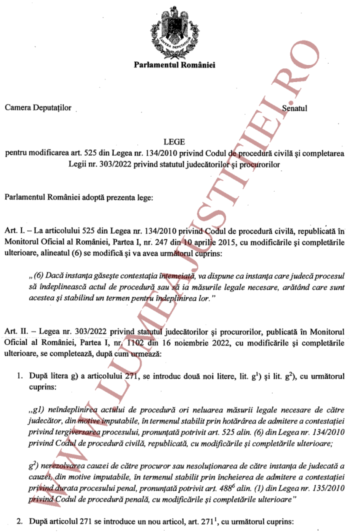 De asemenea, inițiativa de act normativ obligă instanța care admite contestația privind durata procesului să stabilească un termen concret pentru soluționarea dosarului – indiferent dacă speța se află pe rolul unei instanțe sau al unui parchet (click aici pentru a citi).