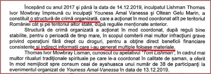 Incepe sa se ridice perdeaua de fum de pe cunoscutul "Dosar Ayahuasca" in care a fost trimis in judecata sub acuzatiile de constituire de grup de crima organizata si trafic de droguri de mare risc, fostul sef al DIPI - serviciul de informatii al MAI, Gelu Oltean, alaturi de Vanessa Youness, proprietara Clinicii Youness Medical din Racari – Dambovita si cetateanul britanic Lishman Thomas Ivor Mowbray.
