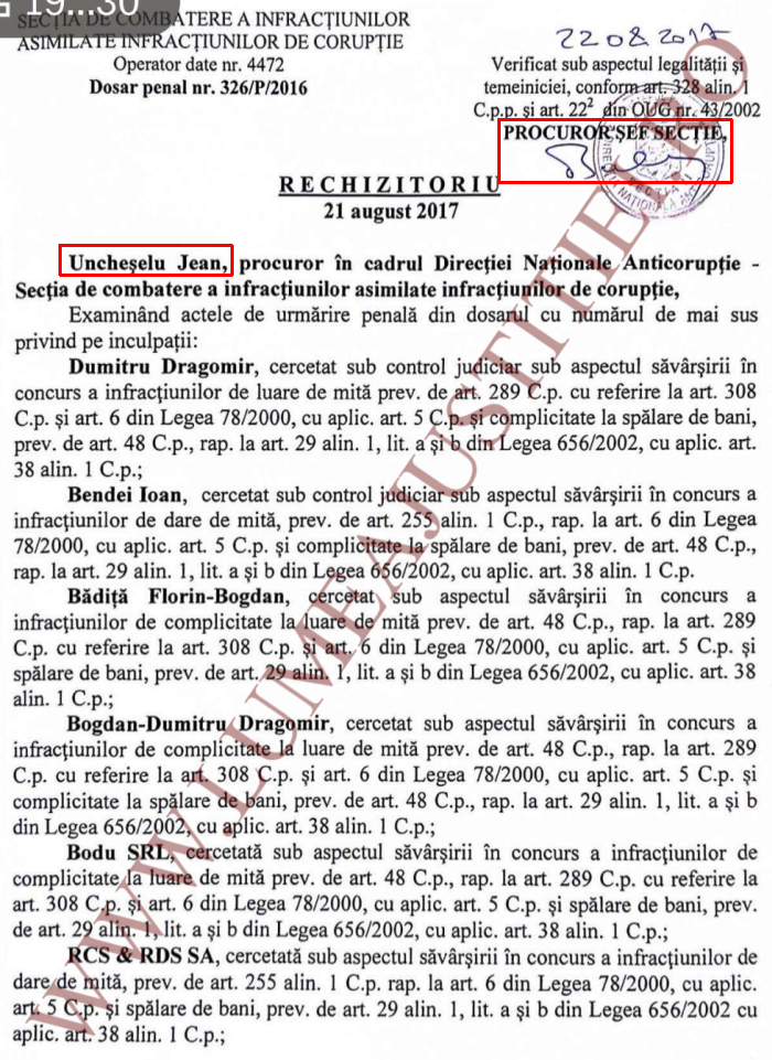 In ceea ce priveste rechizitoriul lui Jean Uncheselu, acesta a fost confirmat de catre seful Sectiei a II-a DNA de la acea vreme, procurorul Marius Bulancea, proapspat pensionar (vezi facsimil).