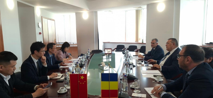 Presedintele Camerei de Comert si Industrie a Romaniei (CCIR), Mihai Daraban (foto dreapta-centru), a avut o intalnire oficiala joi, 9 aprilie 2026, cu Excelenta Sa Chen Feng, Ambasadorul Republicii Populare Chineze in Romania. Discutiile au vizat dinamizarea schimburilor economice bilaterale si identificarea unor mecanisme concrete de stimulare a investitiilor chineze pe piata romaneasca.