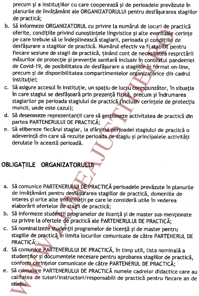 Obligațiile partenerului de practică: